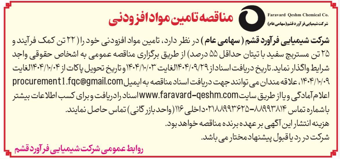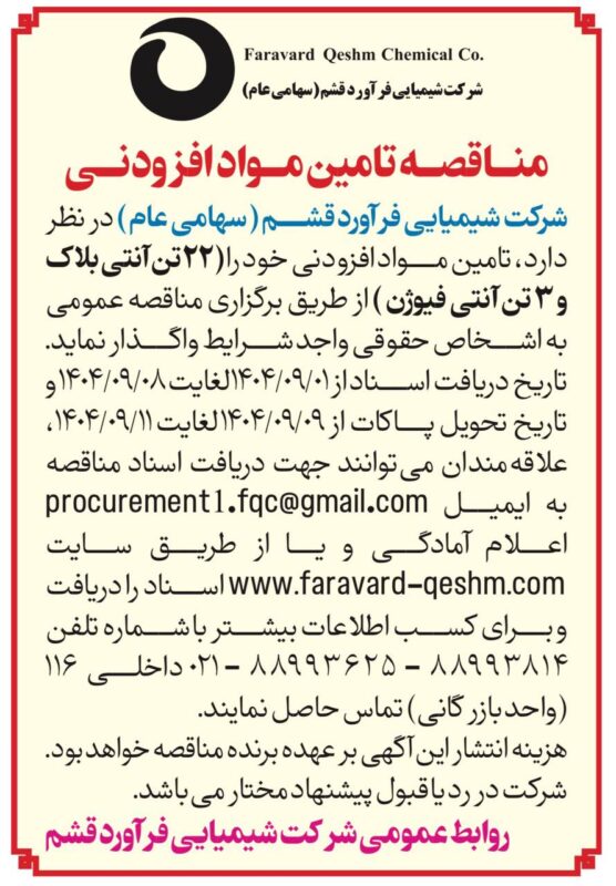 تمامی حقوق این وبسایت برای شرکت شیمیایی فراورد قشم محفوظ است. CopyRight ©2025